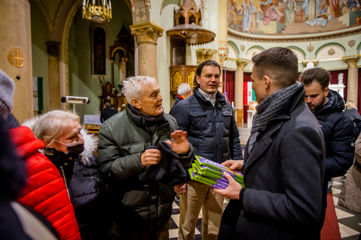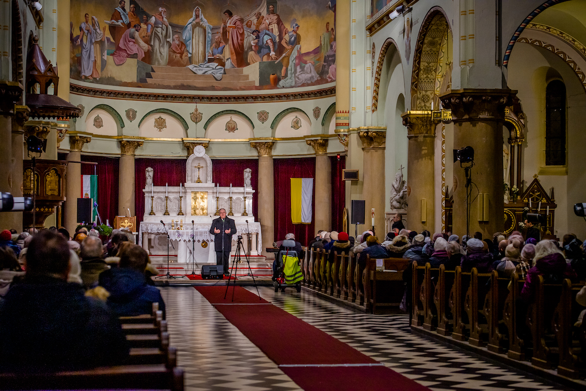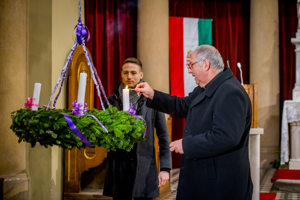 A Kassai téri templomban gyűltünk össze, ahol Pajor András atyával mondtunk köszöntőt és gyújtottuk meg közösen az adventi koszorú negyedik gyertyáját.