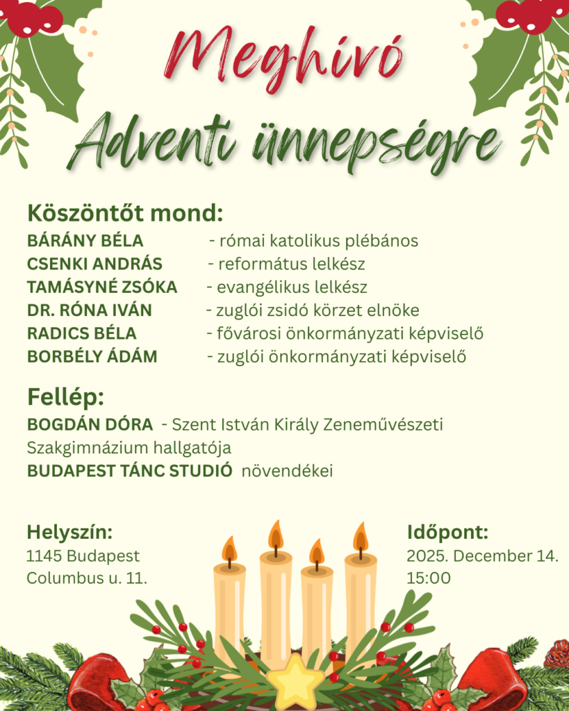 Egyesületünk idén december 12-én ismételten meg tudta vendégelni a Zuglóban lévő állami fenntartású általános és középiskola igazgatókat egy kellemes ebéd keretén belül, hogy megköszönjük a 2025 évben végzett áldozatos munkájukat. Az ebéden részt vevők elmondták, hogy Bővebben...…